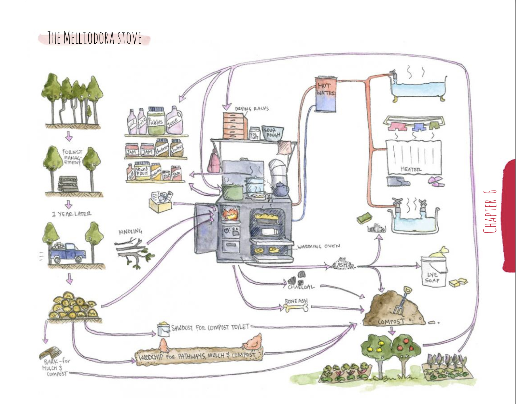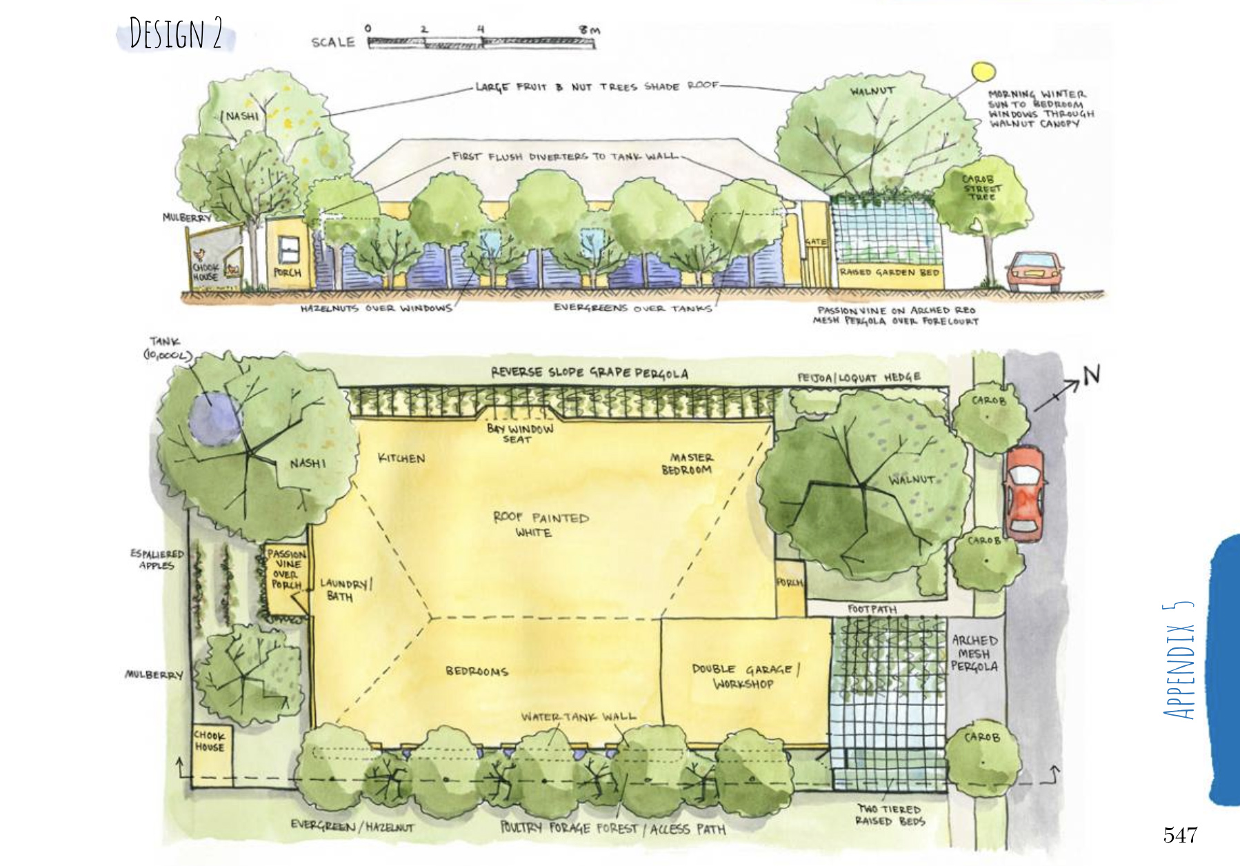 To me, what is most powerful about this book, is the notion that anyone who lives in the suburbs can get on with this right now. No need to wait for the collapse of global capitalism 🙂 ! You can get planting, electrifying and retrofitting your property NOW.