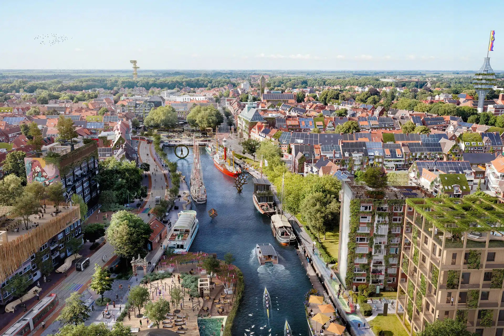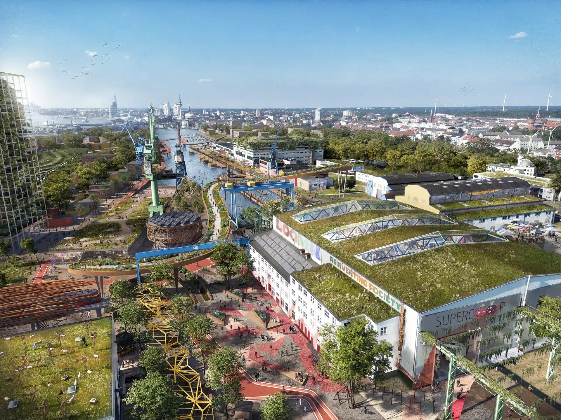The book, Pictures of the future 2045, is a narrative illustration of a climate-neutral Germany, in which 20-30 places of social life in Germany – cities, regions, villages and street scenes – are depicted in their greatest future potential. The authors invite us to journey back in time into the future. Not into the dark future of an uninhabitable planet with floods, resource wars and dead ground, but into a world as it can be when we care about it.