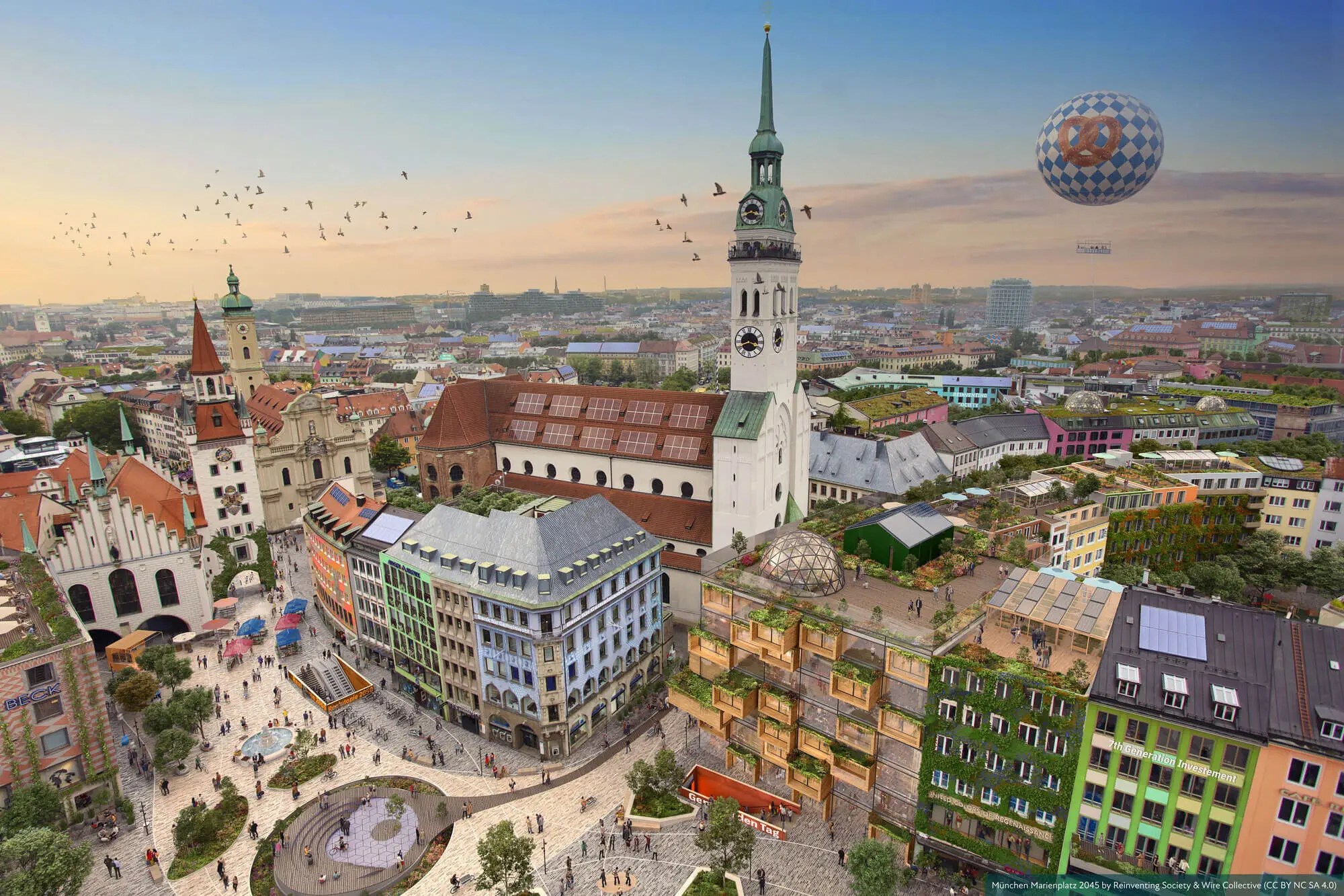 “Daily news from war to climate catastrophe make the Future seems like a place without hope. What we need is another view of the morning – one that inspires and encourages. This richly illustrated book shows with elaborately simulated panoramas what 16 cities in Germany, Switzerland and Austria could look like in the future: green meeting places where energy production, transport and nutrition form a circular economy.”