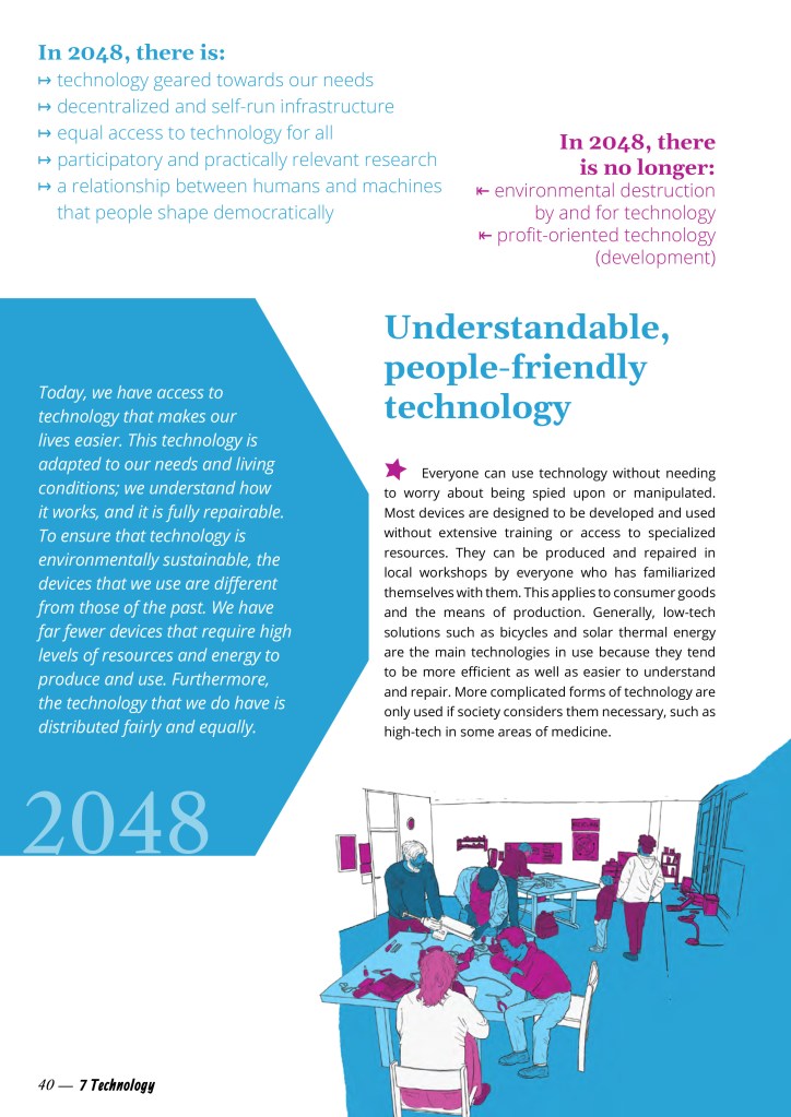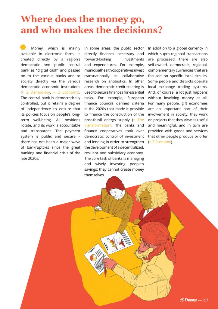 How do you get around? What do you eat? How do you spend your time? How and what do you work? And beyond your own situation: What could this future look like? How is the economy organized? How can it be just, ecological and achievable – for everyone?